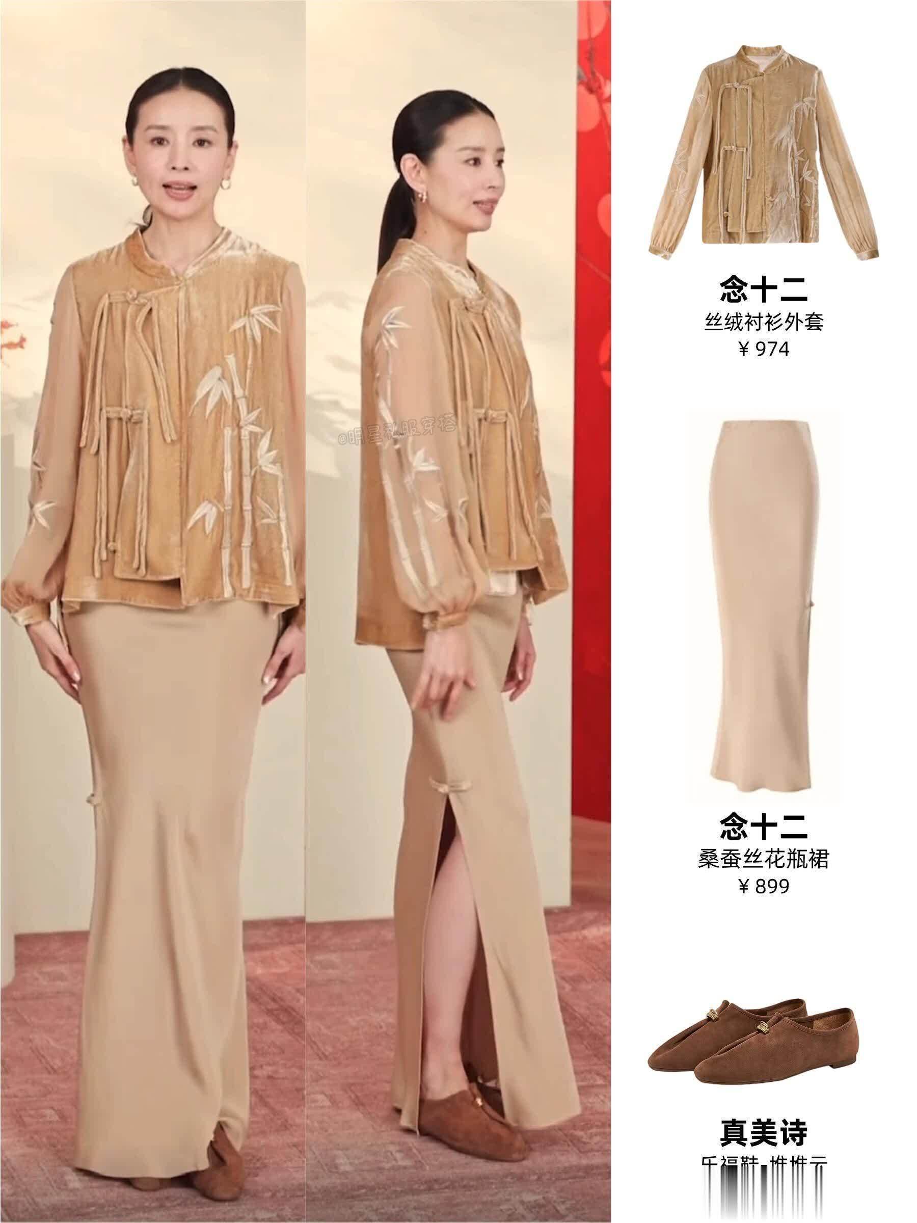 新中式风格是近年的热门,但这套丝绒衬衫外套搭配开衩半裙的造型,对气质和场合的要求都比较高。它需要穿着者拥有清冷、沉静的气质才能穿出高级感,否则很容易显得老气。搭配的羊皮乐福鞋是点睛之笔,中和了丝绒的华丽,增添了日常的实用性。对于大多数人来说,或许可以尝试用一件新中式上衣搭配简单的牛仔裤或半裙,更容易驾驭。